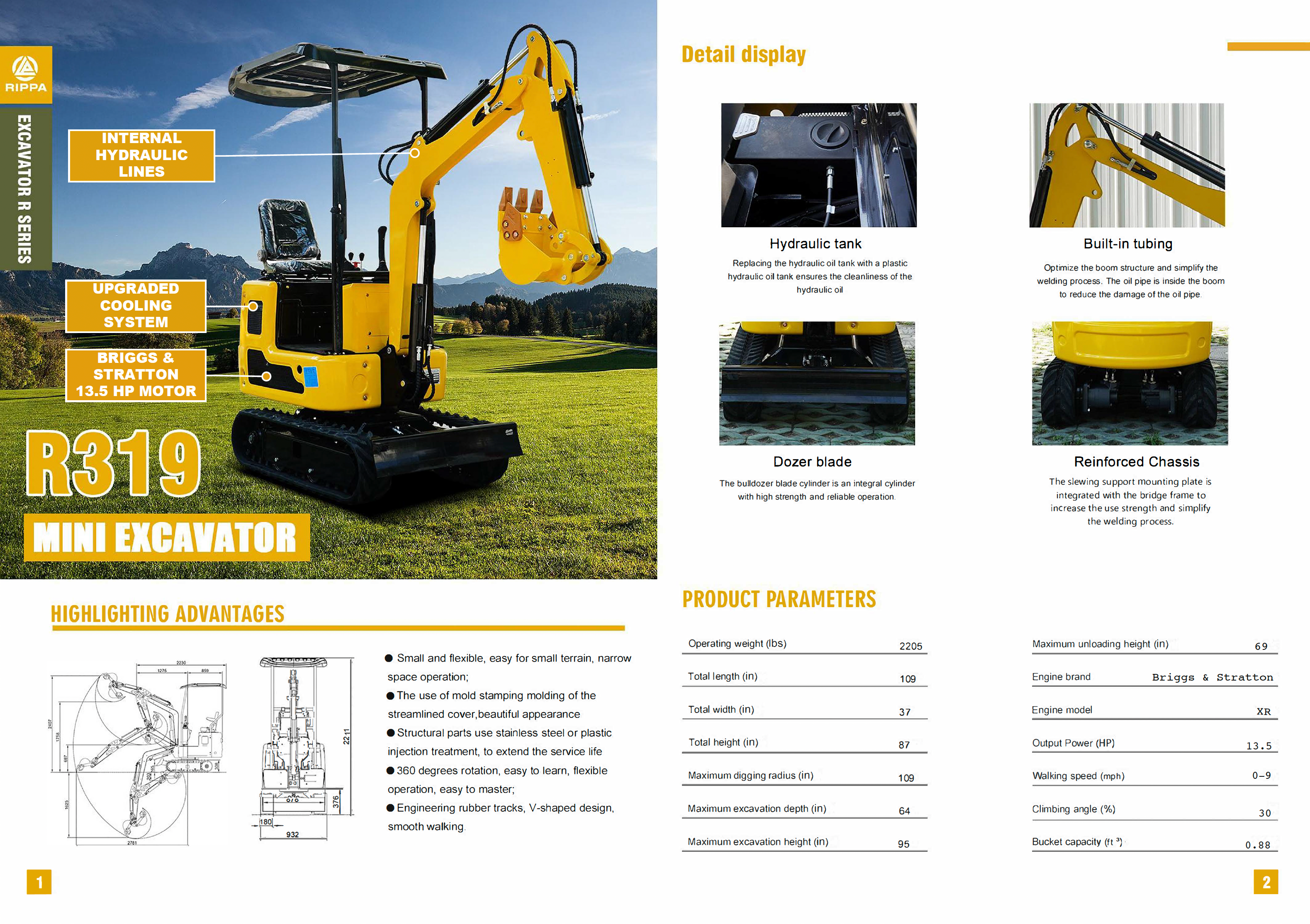 The Rippa R319 Mini Excavator is a compact yet powerful digging machine engineered for efficiency, versatility, and durability. Built to perform in confined spaces, it’s the ideal solution for contractors, landscapers, farmers, and property managers who need professional-grade performance without the bulk of a full-sized excavator.